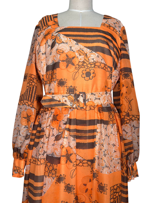 1970s Emma Domb Ruffled Sheer Yellow Maxi Gown