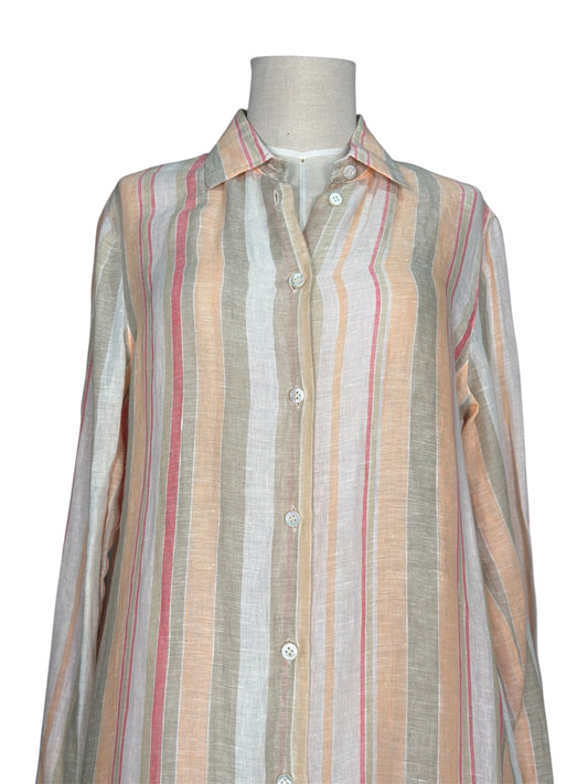 Modern Loro Piana Linen Shirt Dress Pastel Striped Button-Up