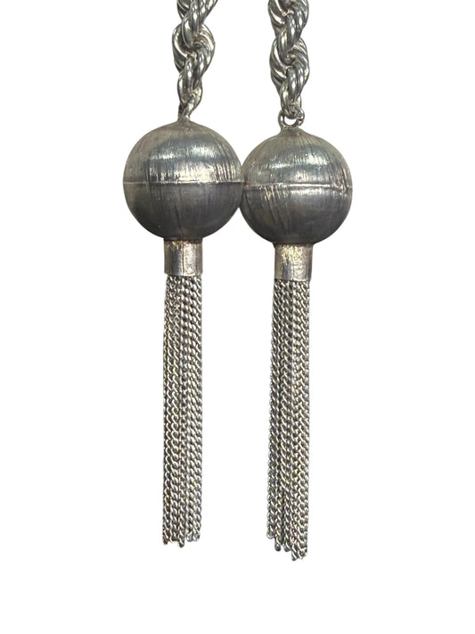 Vintage Sterling Silver 925 Long Tassel Lariat Necklace - Mexican Taxco