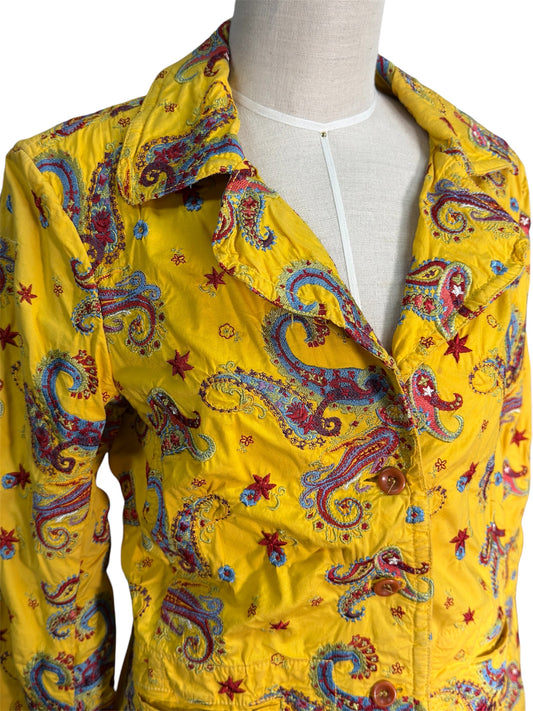 Modern Johnny Was Yellow Paisley Embroidered Cotton Blend Jacket - Size Medium