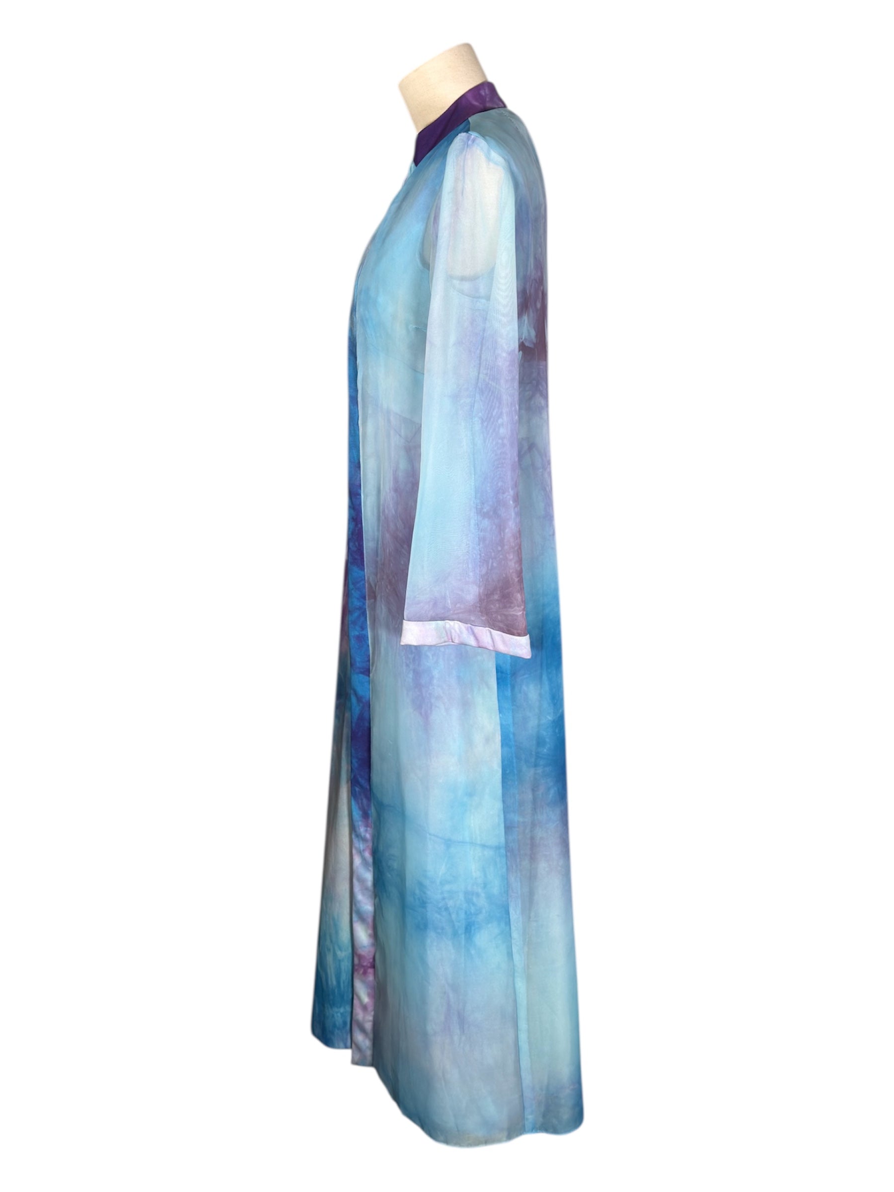 1970s Don Luis Tie-Dye Blue And Purple Two Piece Maxi Dress And Sheer Duster Set