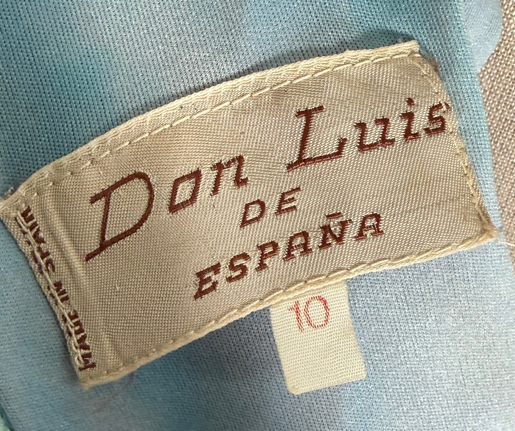 1970s Don Luis de Espana Stevens & Co two-piece maxi dress and sheer jacket set. Flowy sleeveless maxi dress with matching long sleeve sheer duster overlay in a pastel blue and purple tie-dye pattern, featuring a sweetheart neckline, empire waist, and back zipper closure for a dreamy vintage look. This piece was made in Spain and is labeled a size 10, but please refer to the measurements. There were no noticeable flaws with these pieces.