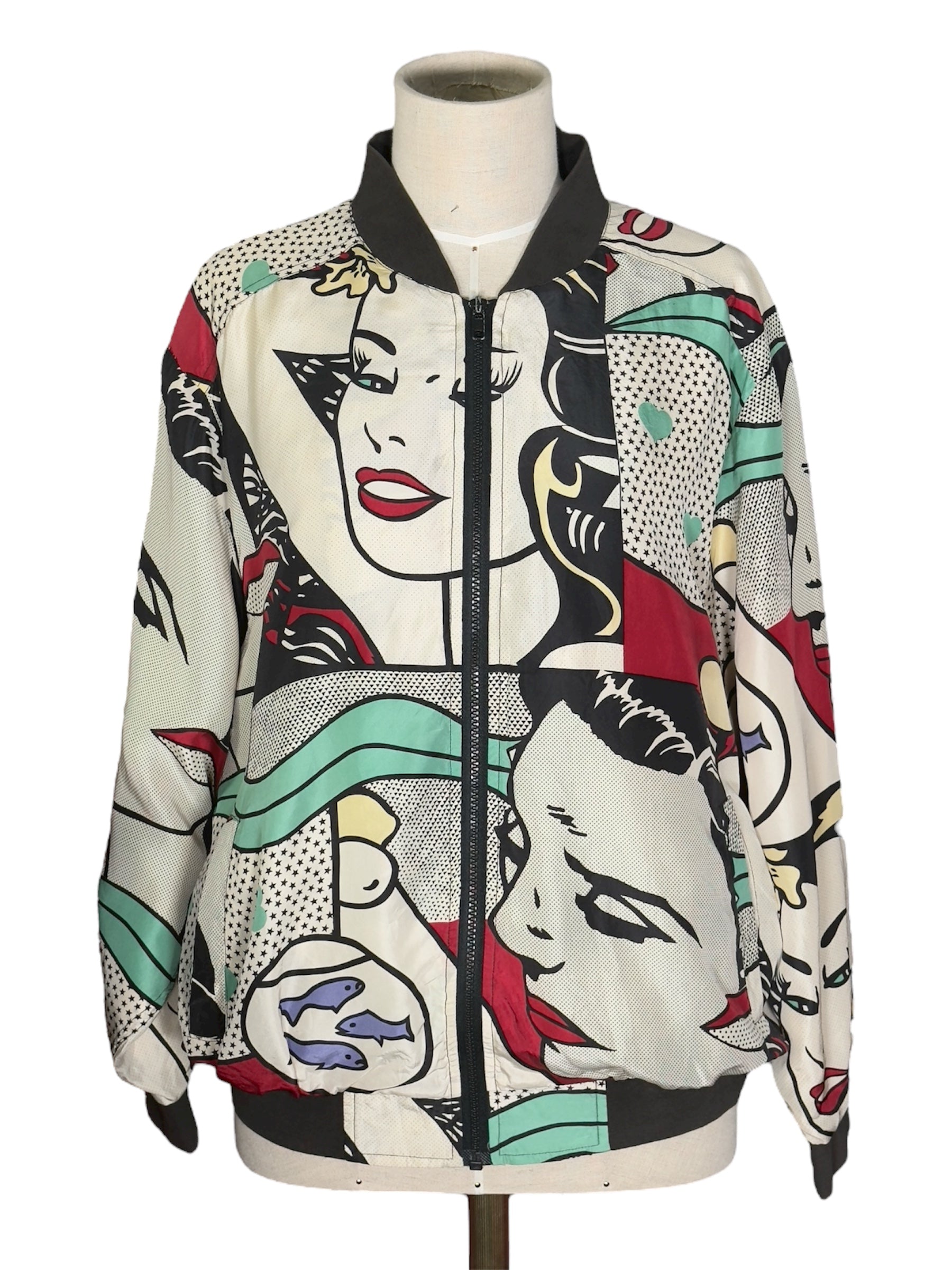 80s/90s Planet Silk Pop Art Graphic Silk Bomber Jacket