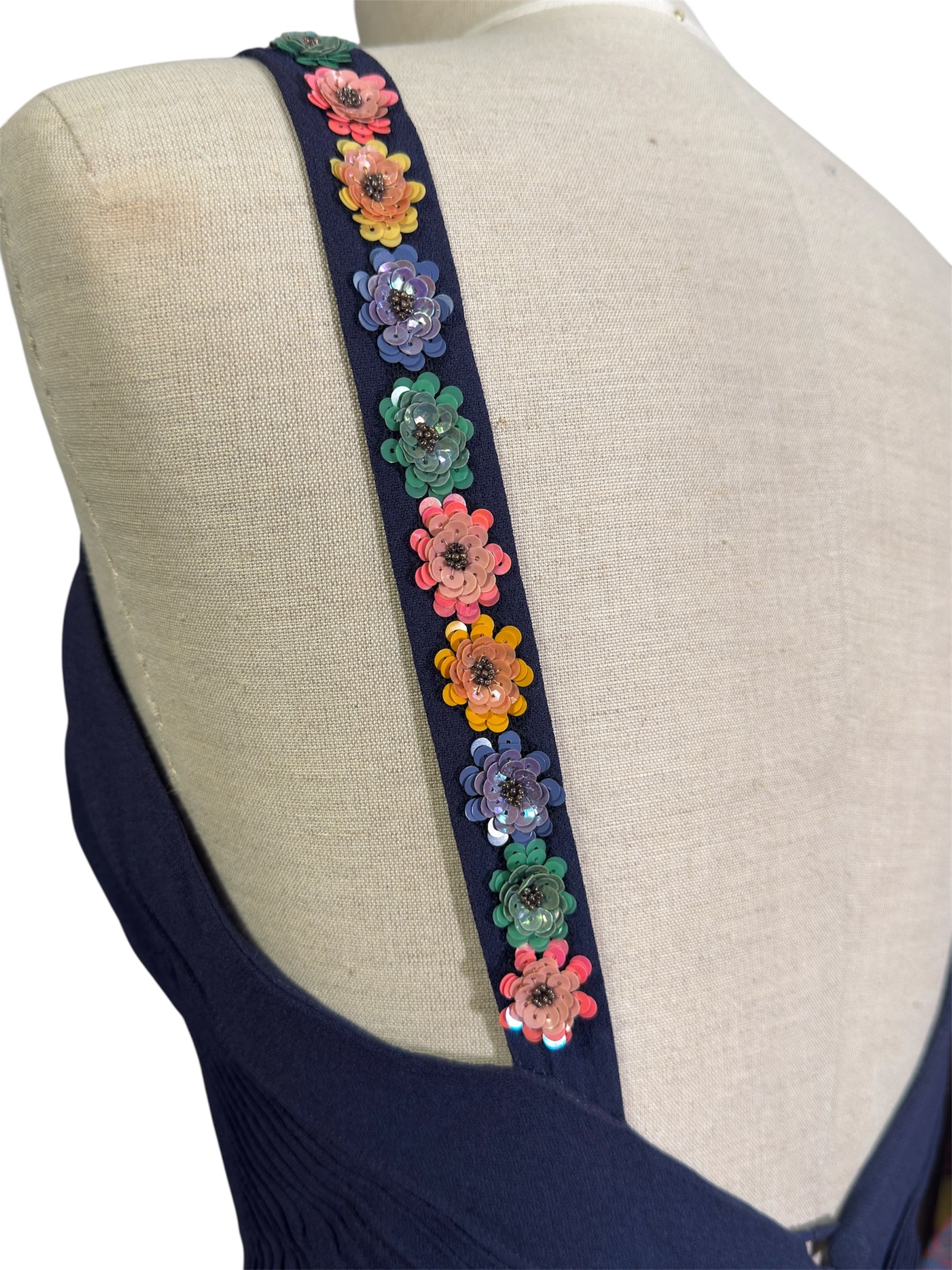 30s Bias Cut Navy Gown with Celluloid Flowers