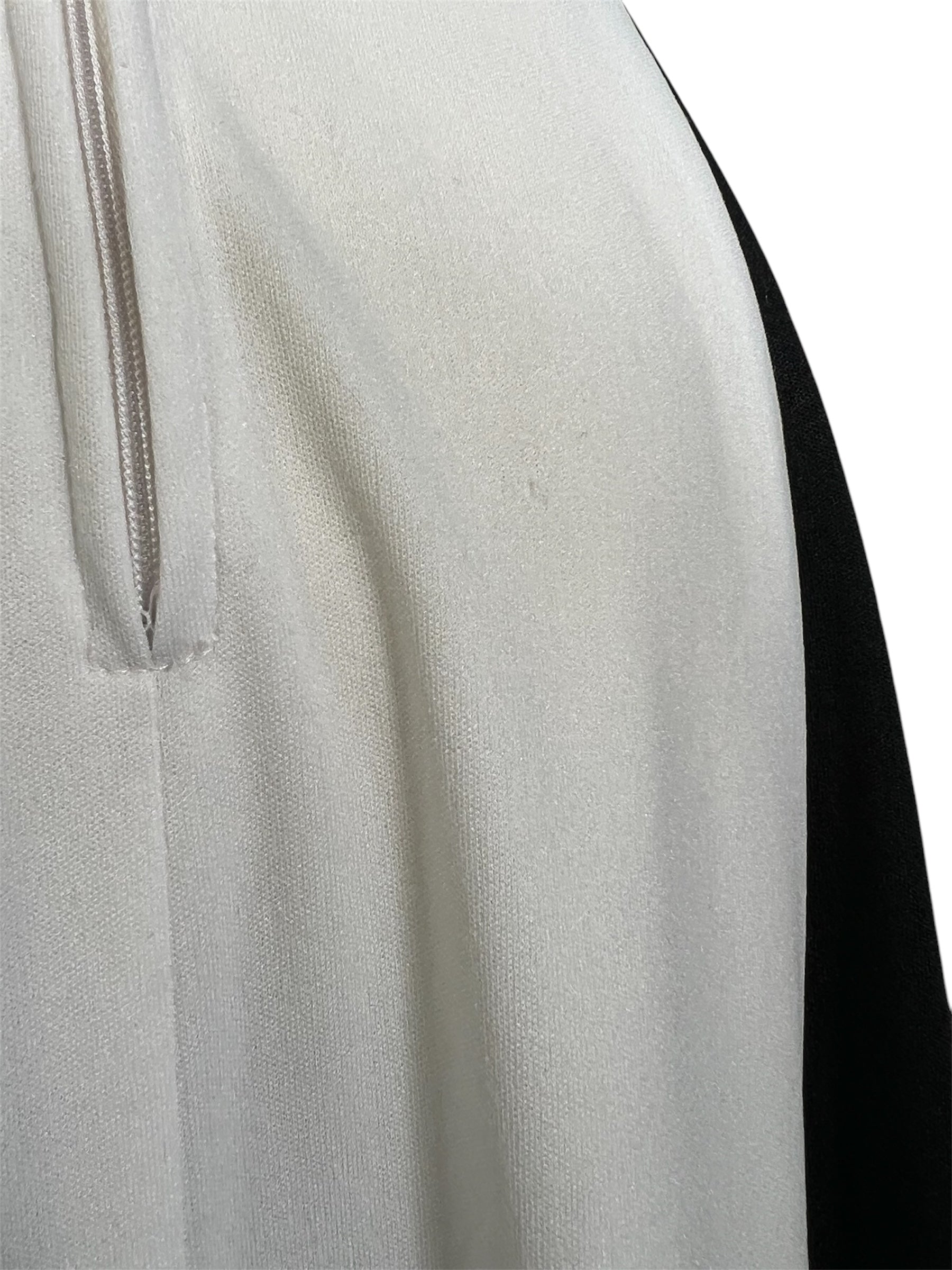 1970s My Things halter top dress. This black and white striped dress has a zipper closure in the back and a v-neck in the front. The dress is sleeveless and is a long, maxi length. It has a slight condition issue, picture in the last photo. There is a small snag on the back of the dress. This dress is perfect for spring or summer!