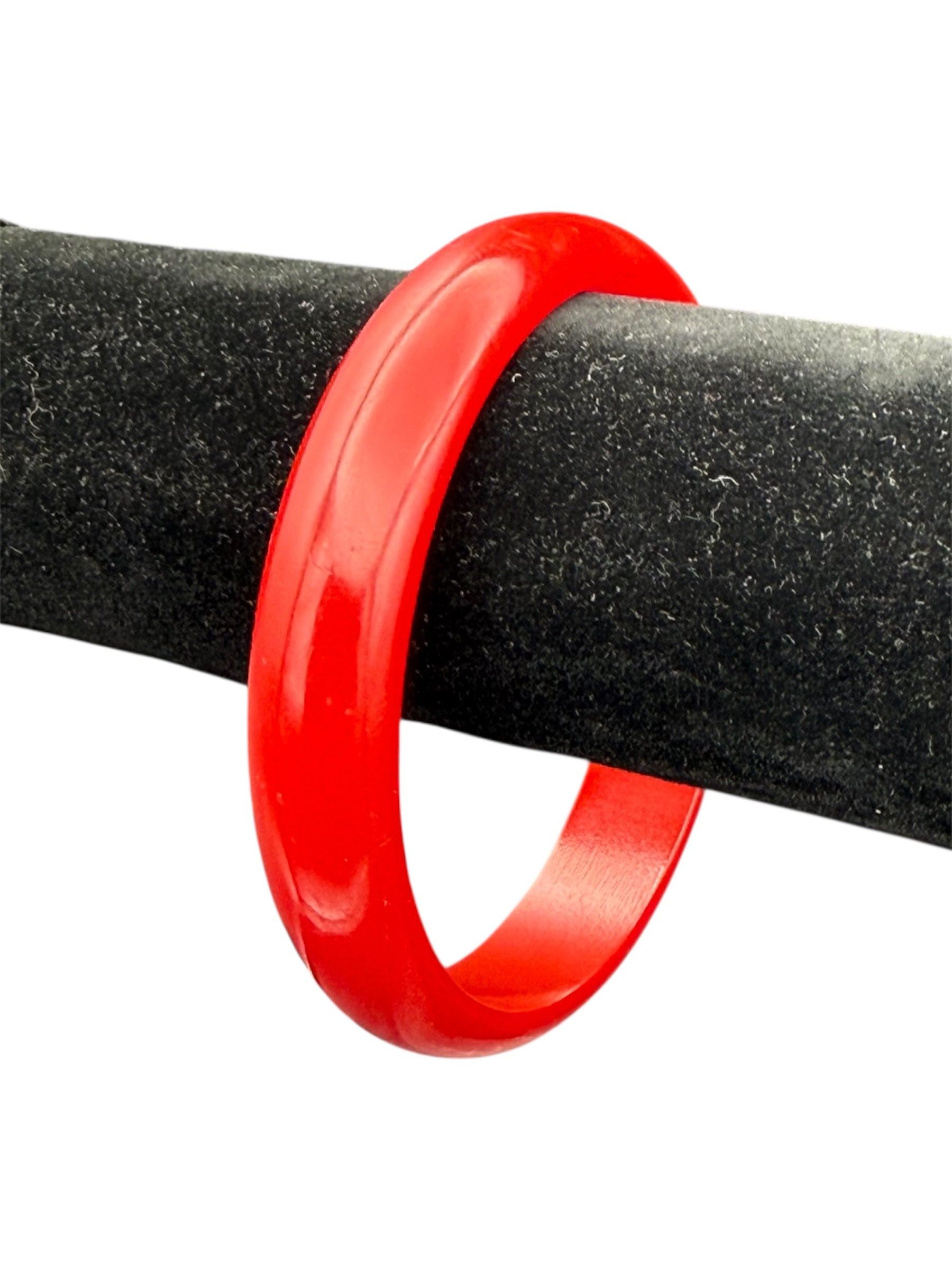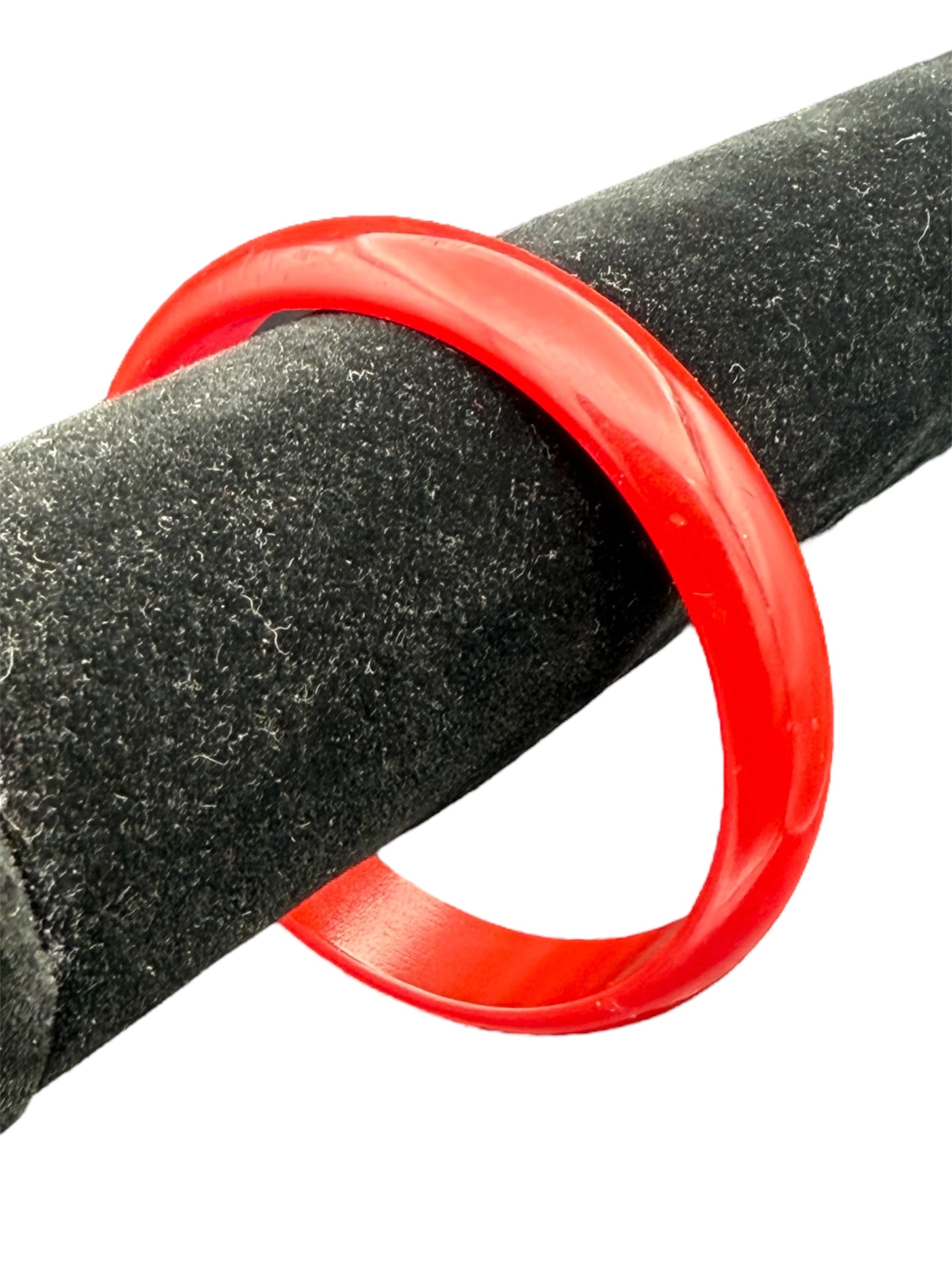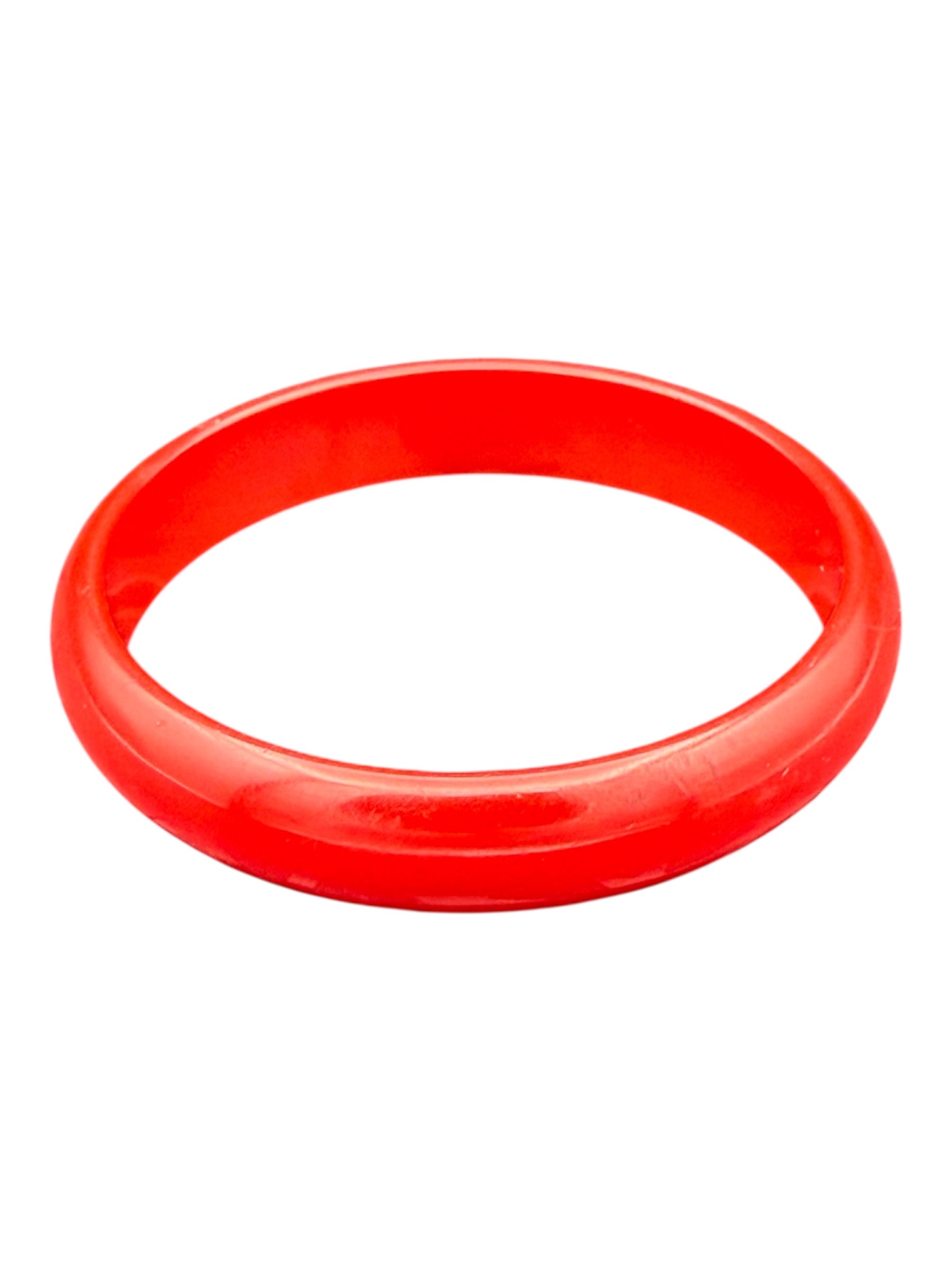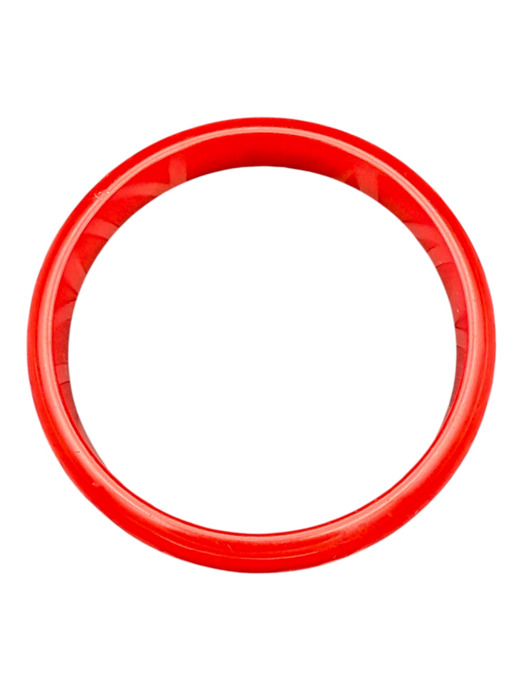 Vintage Bakelite bangle. This medium thickness bangle features a cherry-red color. There was no noticeable flaws with this piece.