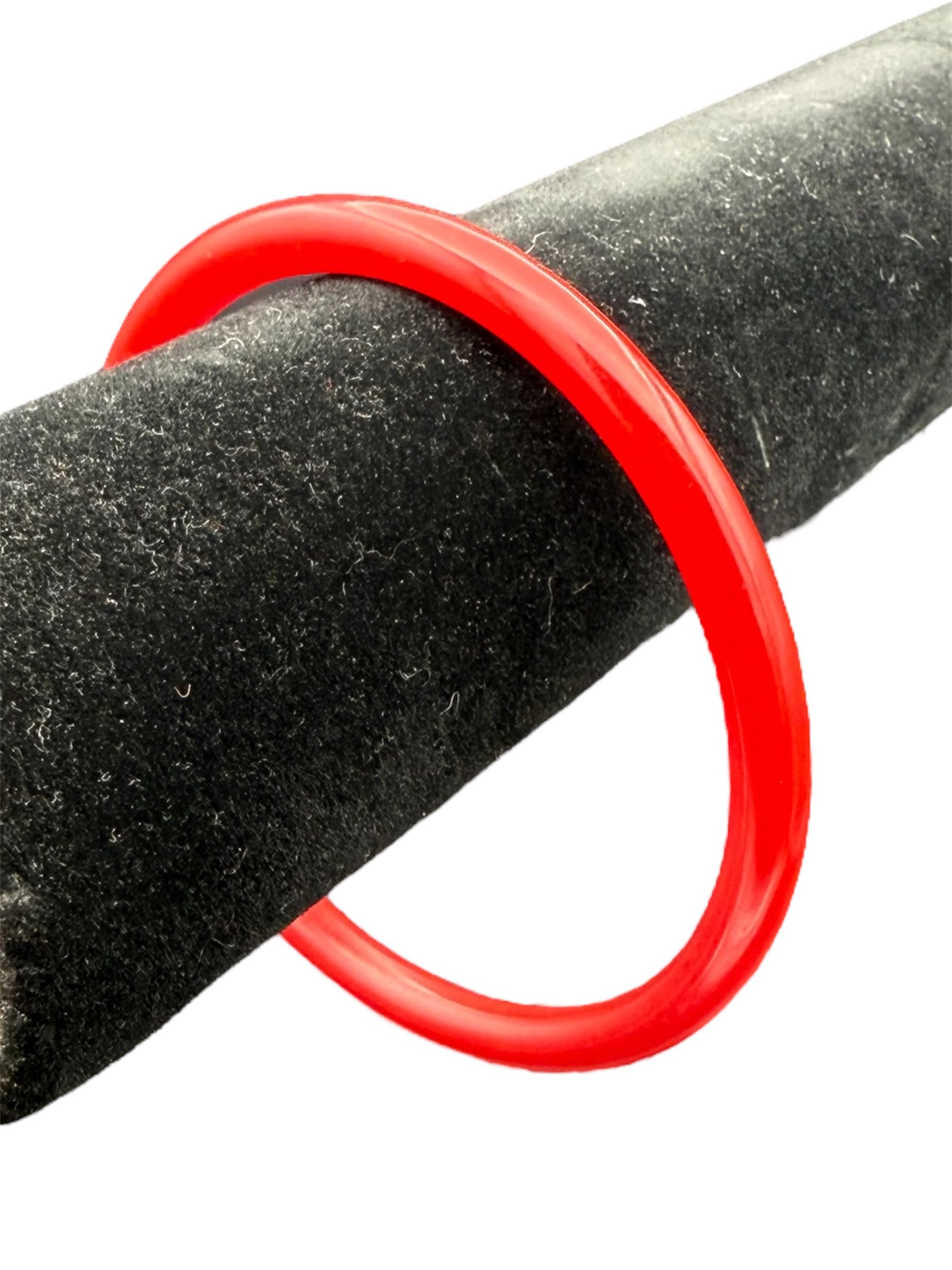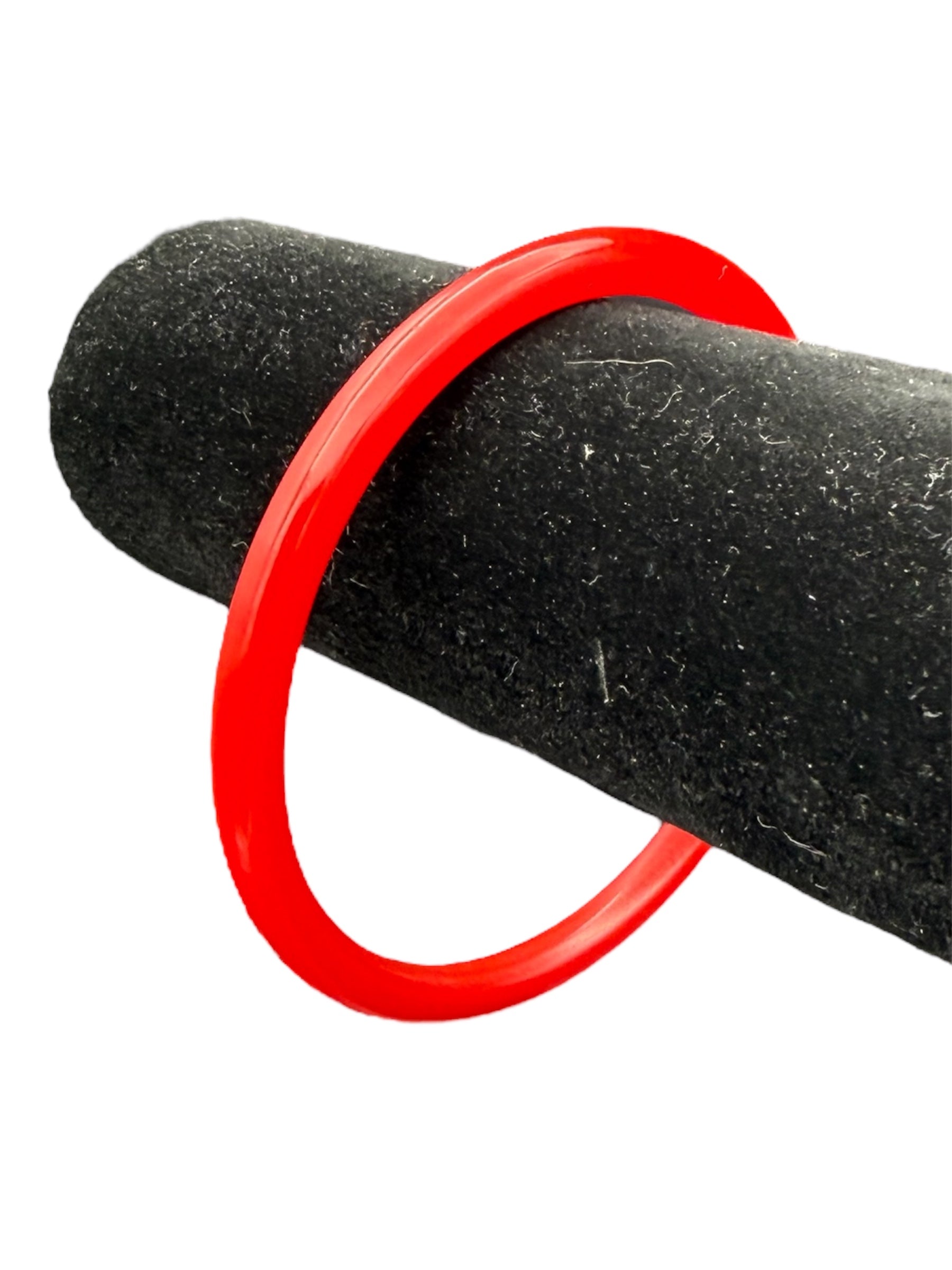Vintage Bakelite bangle. This thin bangle features a cherry-red color. There was no noticeable flaws with this piece.