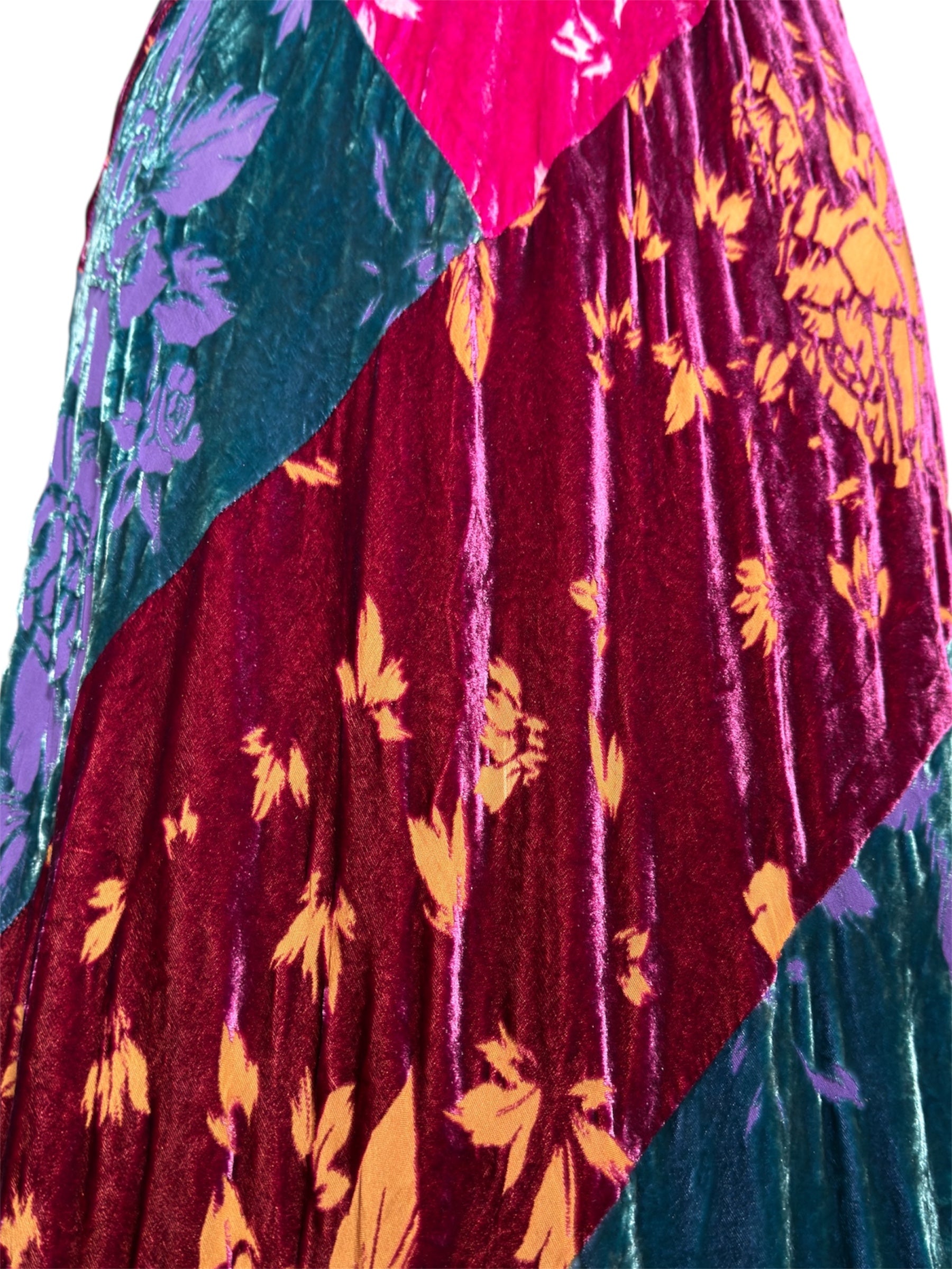 Modern Johnny Was Jade Bohemian Velvet Floral Patchwork Maxi Dress
