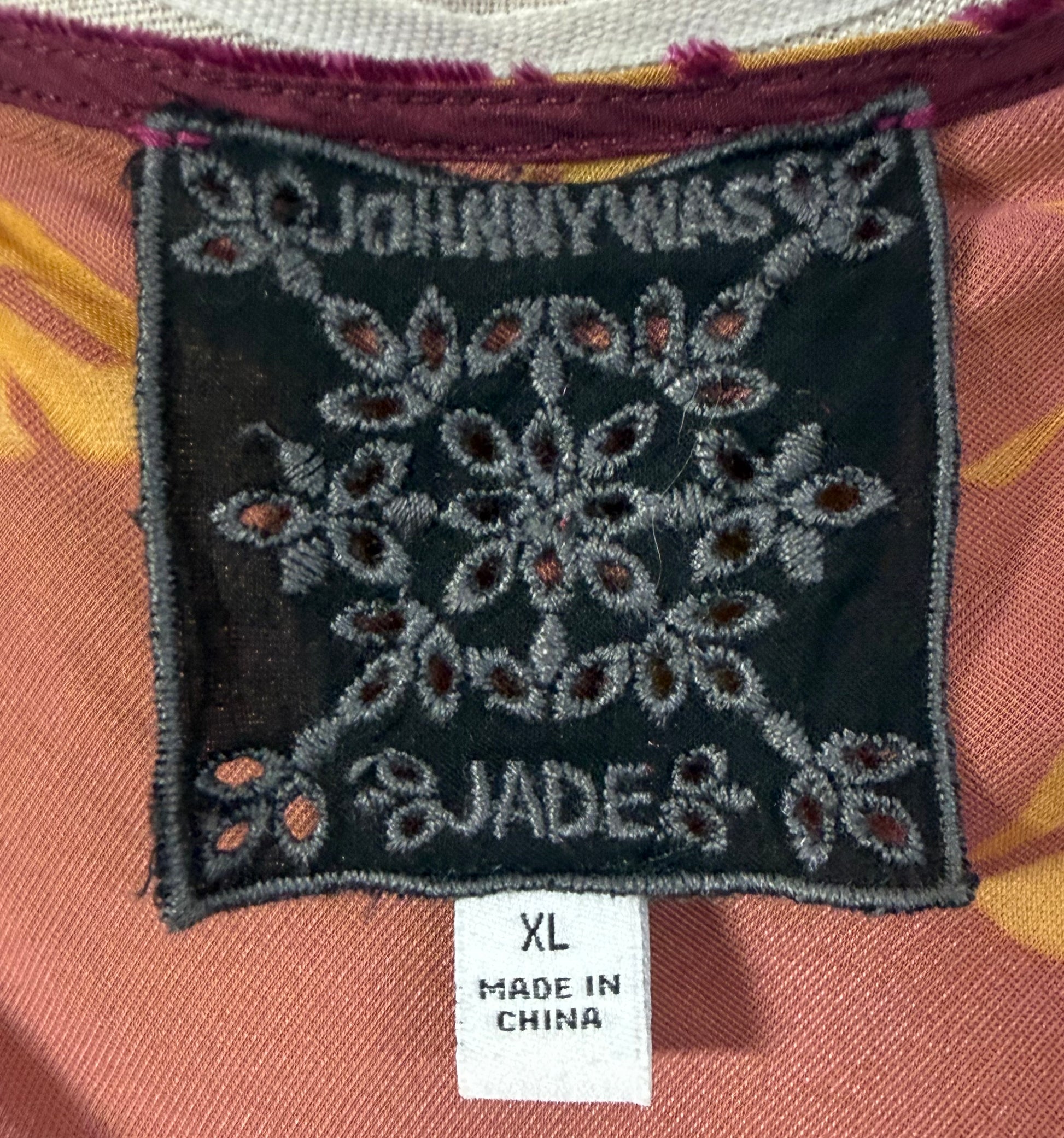 Modern Johnny Was Jade label dress. Luxurious velvet maxi dress featuring a vibrant multicolor patchwork design with floral prints, v-neckline, cap sleeves, and a soft, flowing silhouette. This dress is semi-sheer and was photographed without a slip. It was made in China and unfortunately the materials tag was cut off. It is marked a size XL, but please refer to the measurements. There is quite a bit of stretch with this piece and there are no closures. There was no noticeable flaws with this piece.