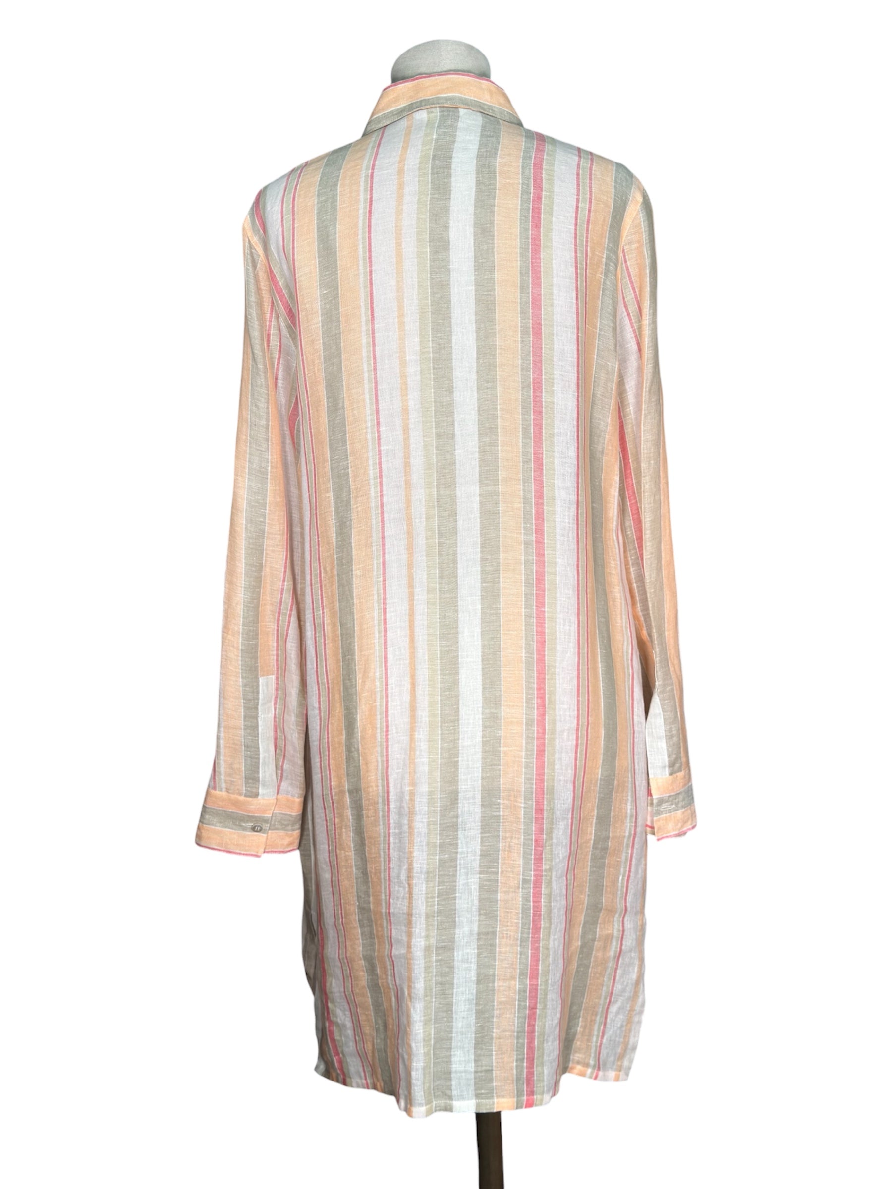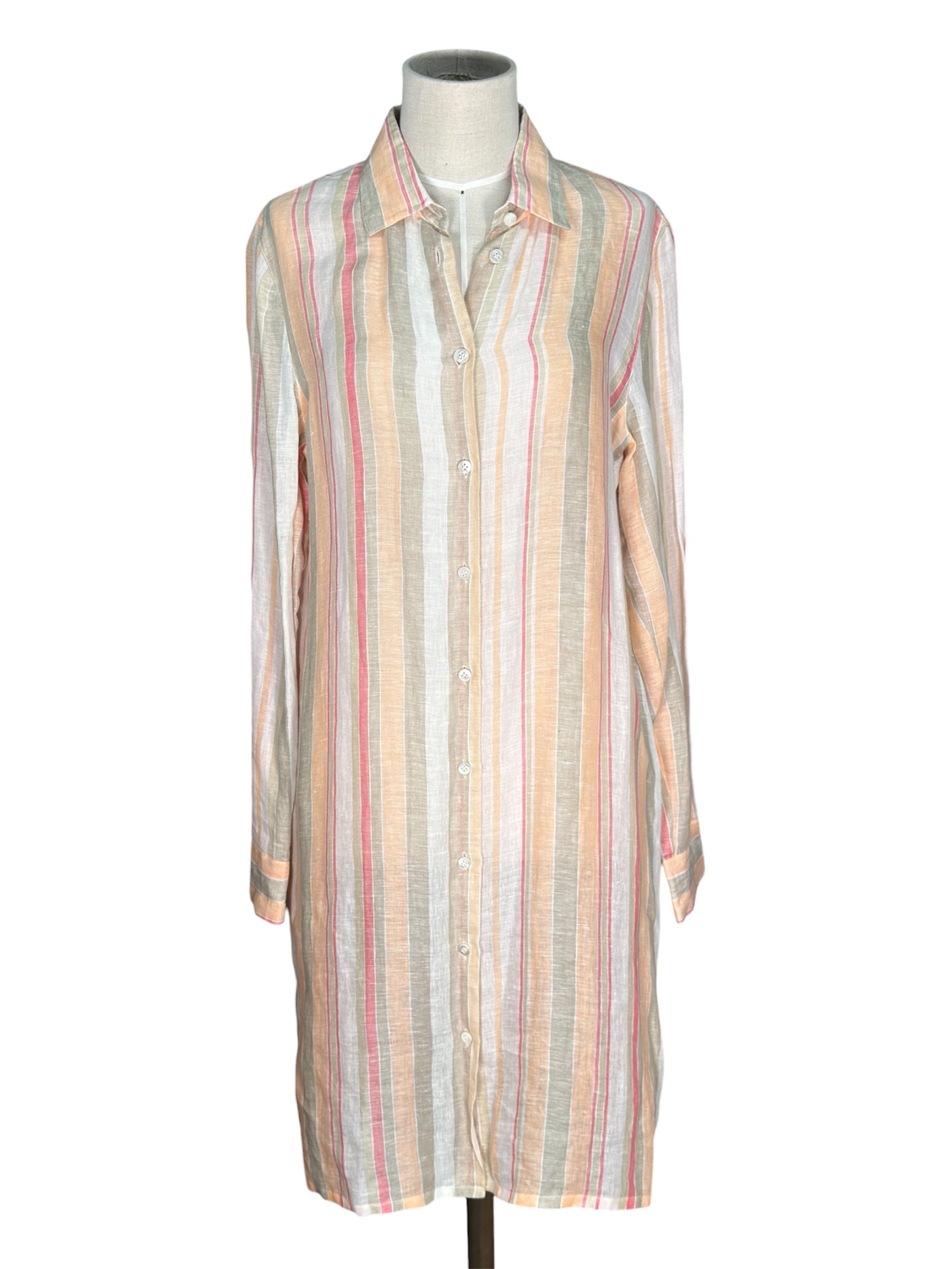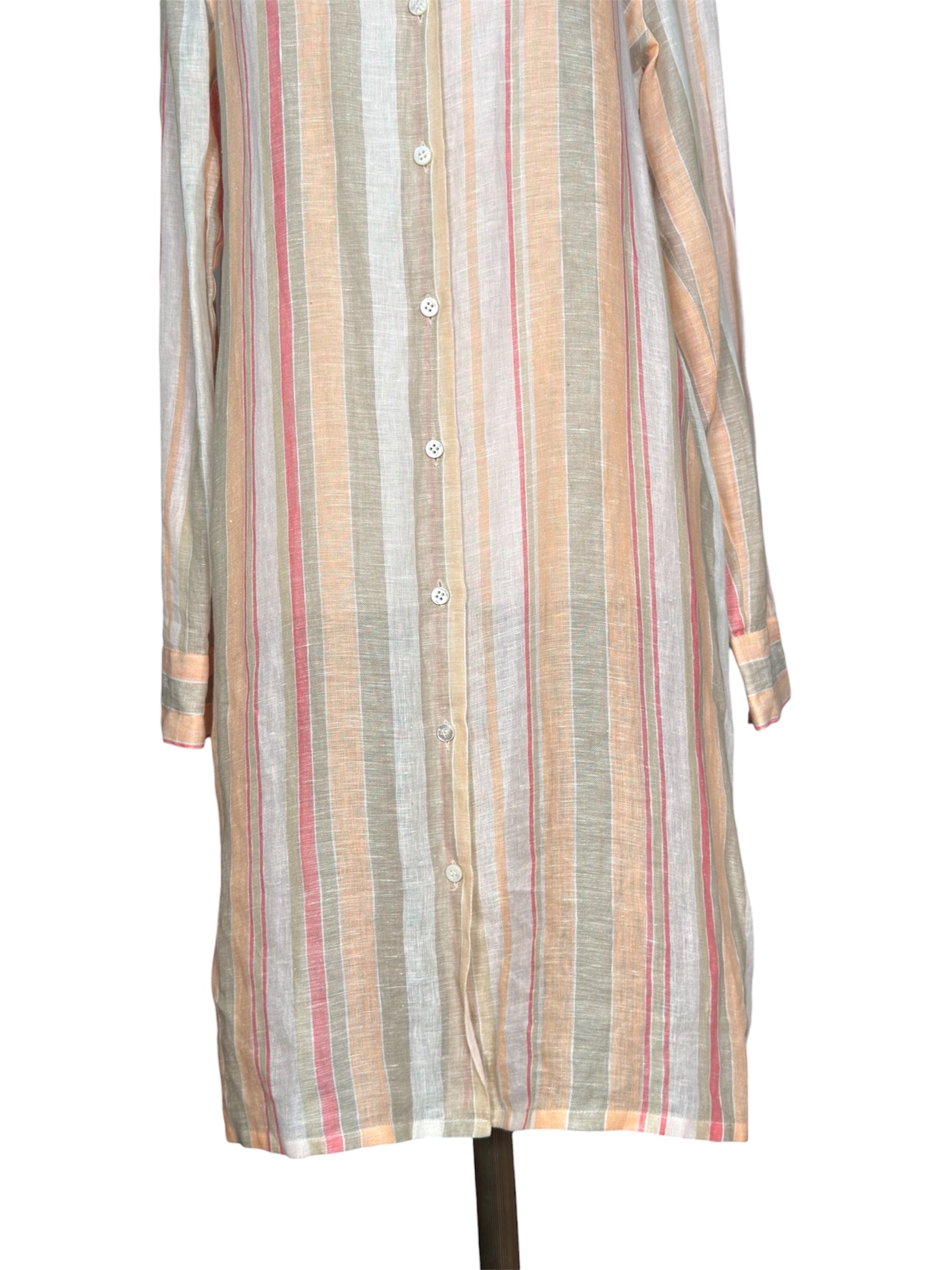 Modern Loro Piana Linen Shirt Dress Pastel Striped Button-Up