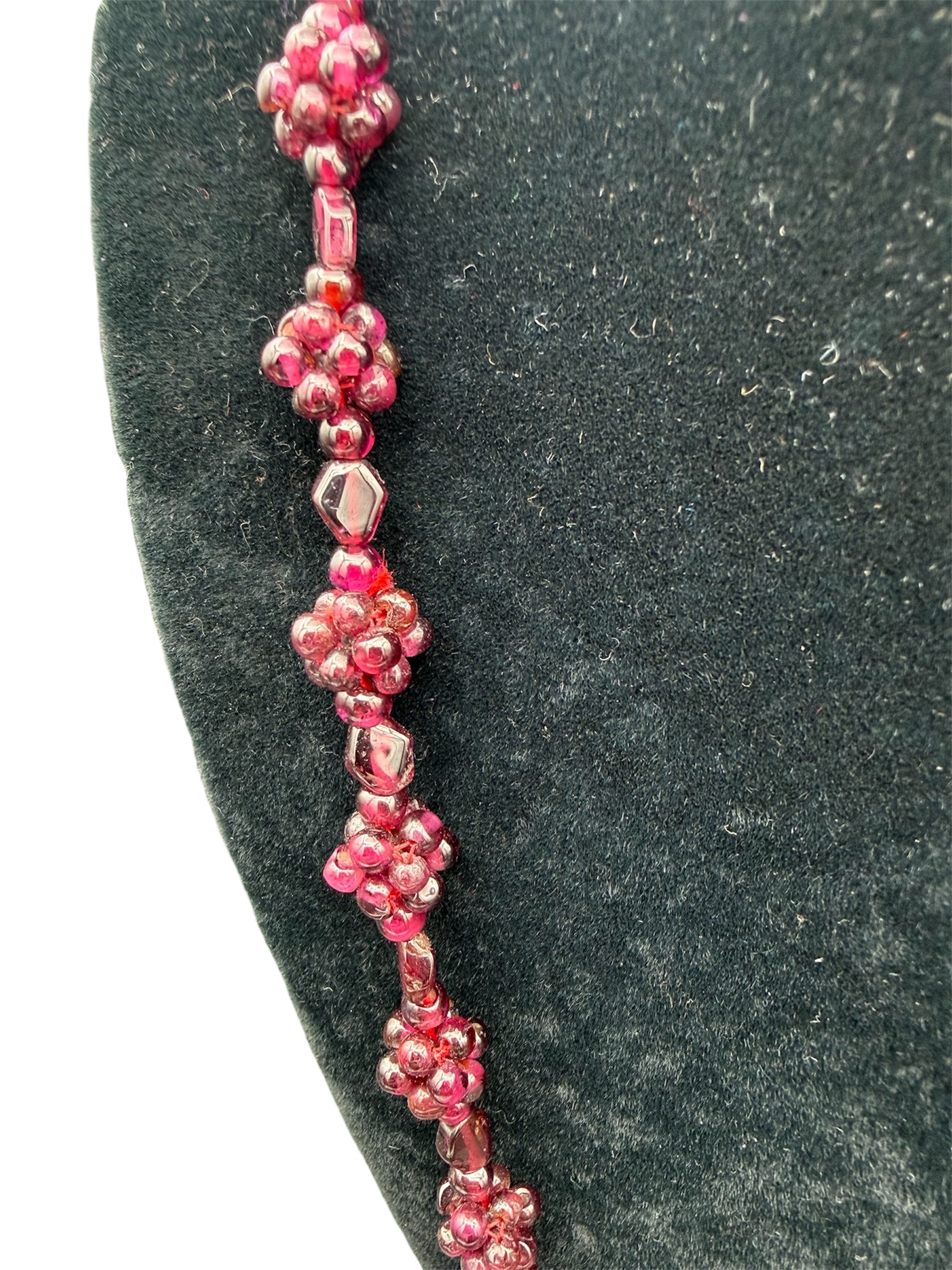 Vintage Grape Garnets Beaded Necklace Floral Cluster Design